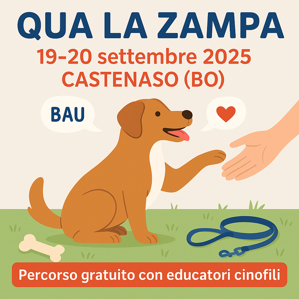 Il 19 e 20 settembre 2025, dalle ore 16.00 alle 18.00, presso il Centro Cinofilo “Ora della Movida” (ex Smiling Dog) in via San Donato 3/2 a Castenaso (Bologna), si terrà “Qua la Zampa”, un percorso formativo gratuito aperto a tutti.